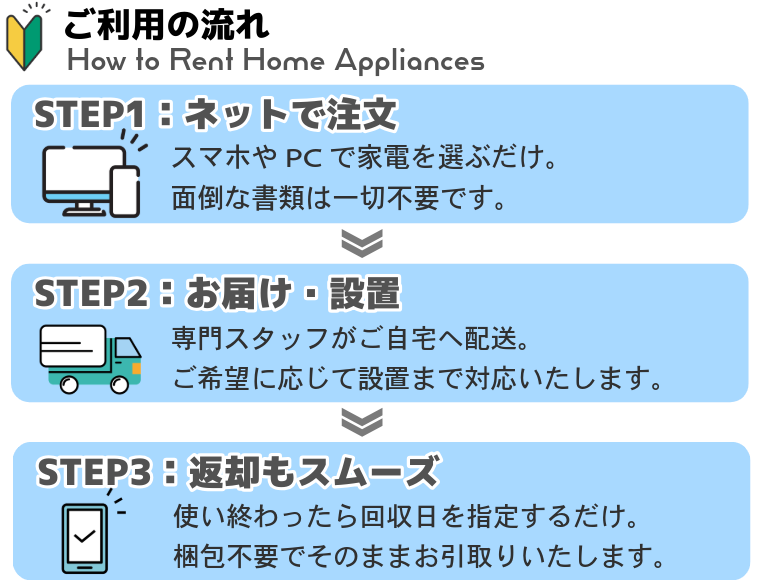 We rent out the latest home appliances from Shiga to customers all across Japan.