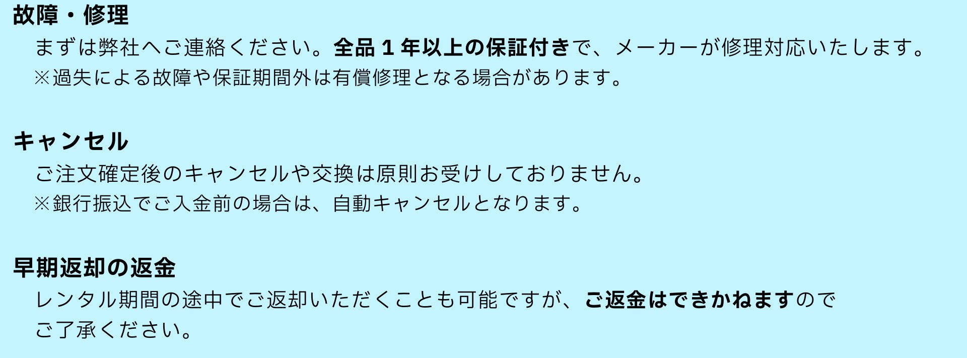 🔔故障・修理・キャンセルについて