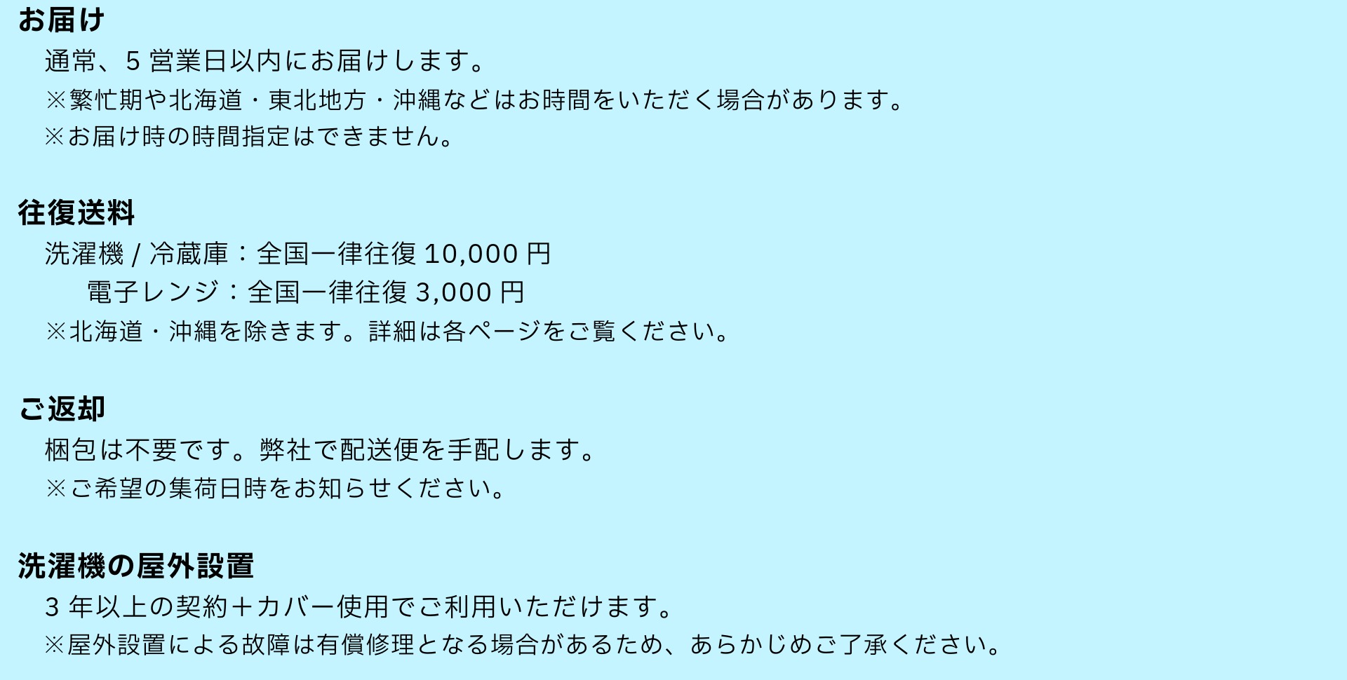 🚚お届け・送料・返却について
