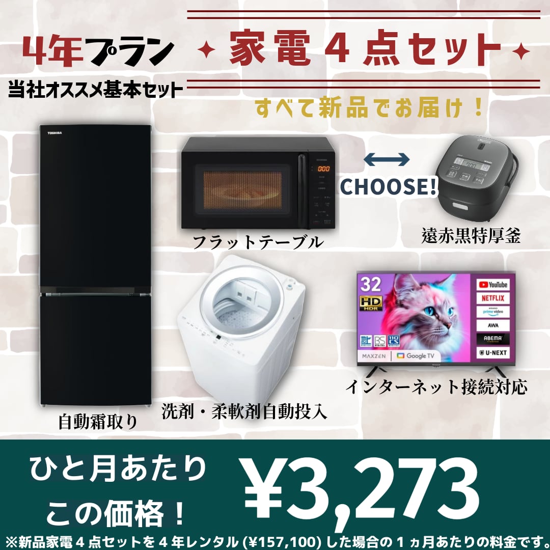 【当社オススメ新品家電4点セット】この品質でこの価格は驚きです!(レンタル:4年)