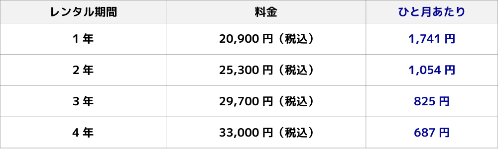 4年レンタルなら、実質月々687円で、一括でも断然お得!