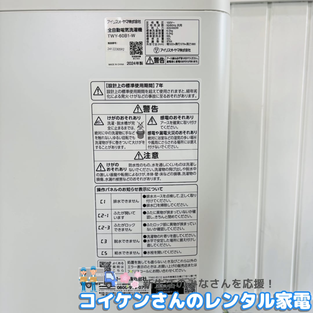 ※こちらは中古洗濯機(2024年製)のレンタルです※