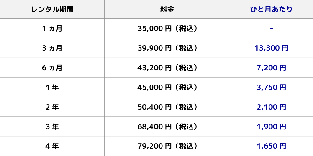 ご希望のレンタル期間をお選びください。≪長期割引でお得に!≫