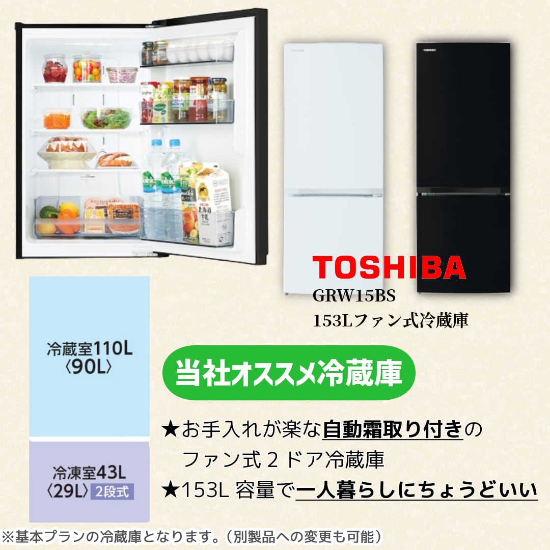 ・製品:東芝 2ドア冷蔵庫(153L/右開き)