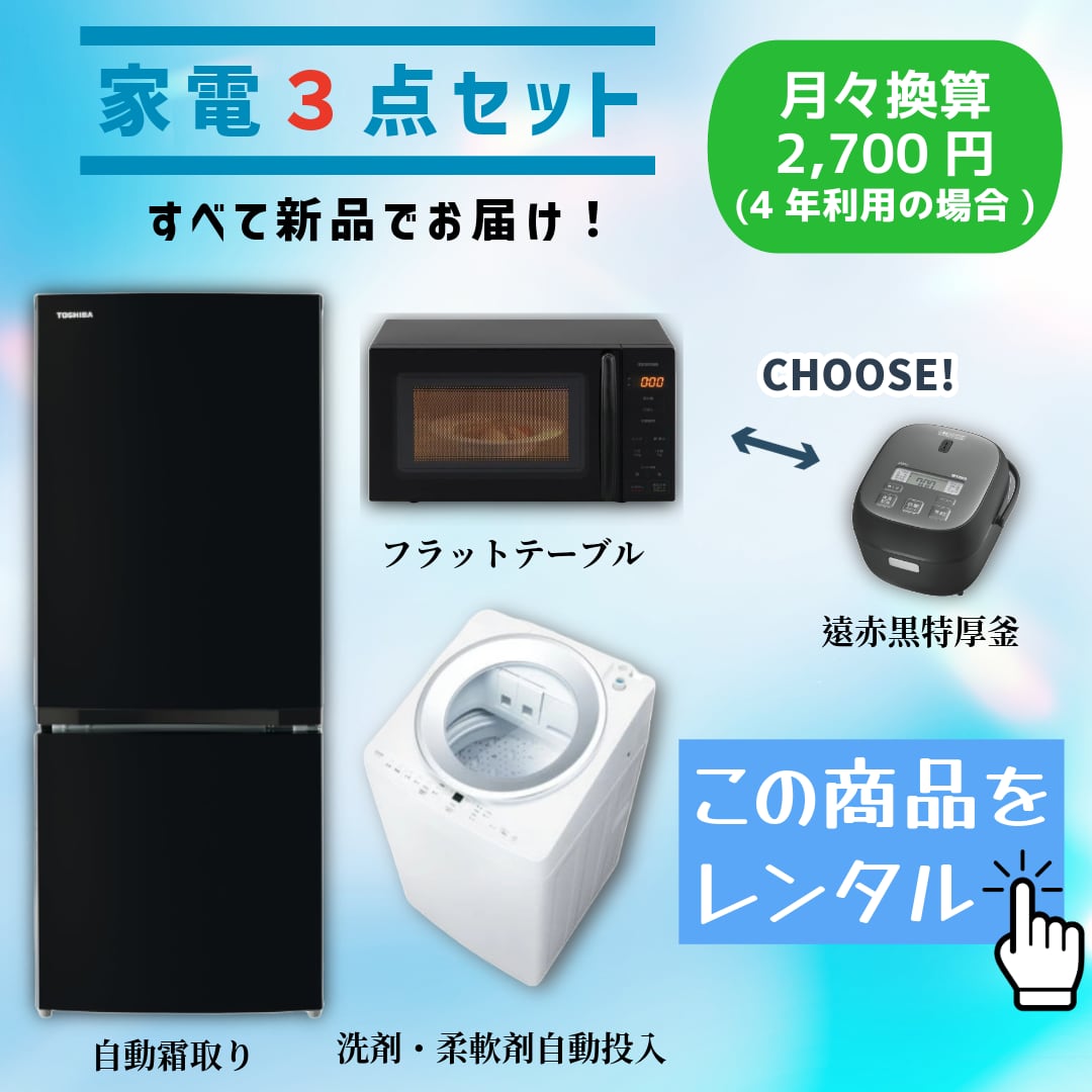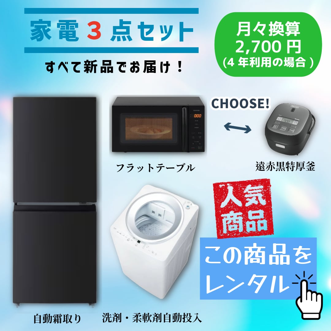 【新品家電3点セットをレンタル】この品質でこの価格は驚きです!(選べるレンタル期間:3ヵ月~4年)
